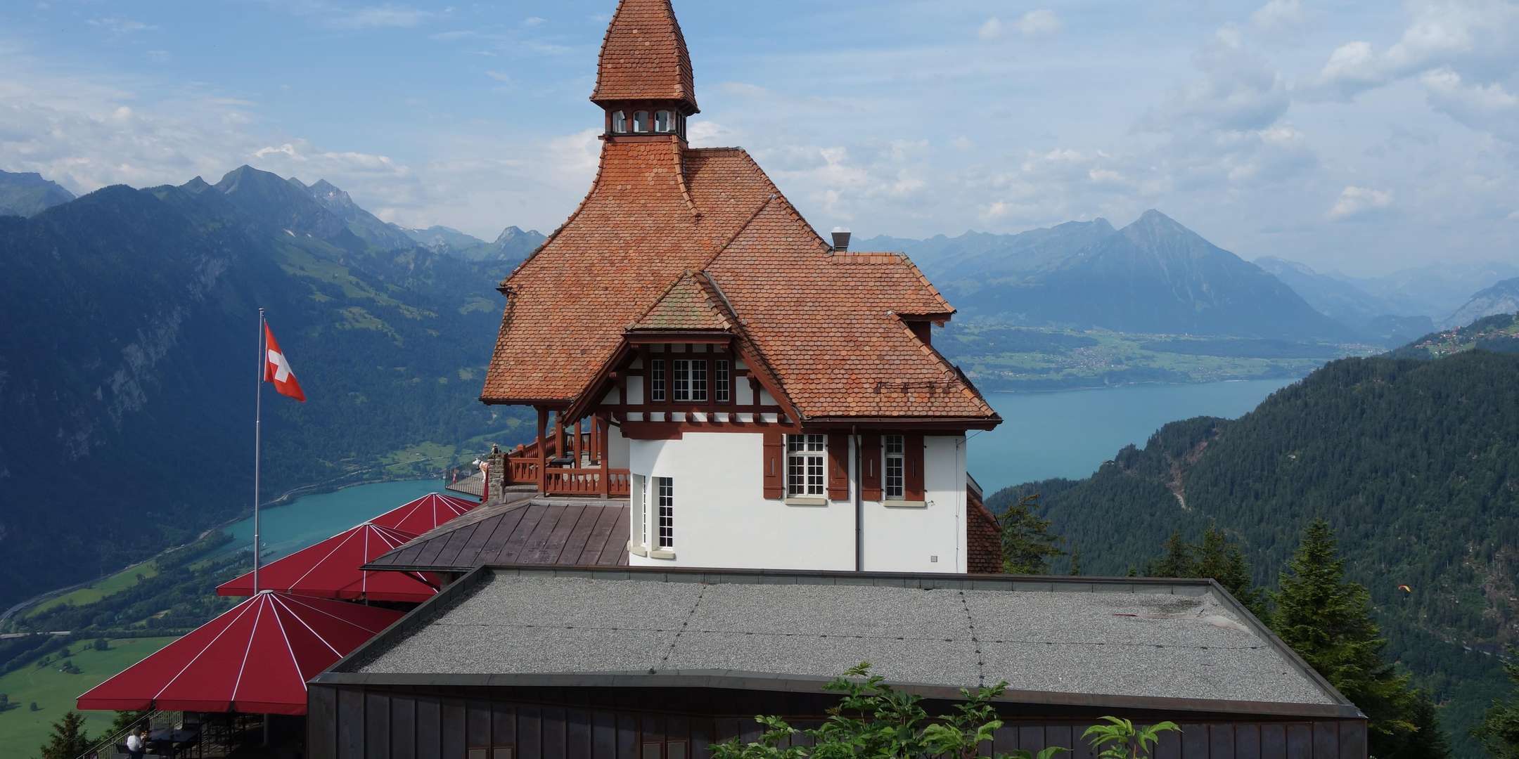 The Harder Kulm Panorama Restaurant is renowned for its breathtaking panoramic views of the Eiger, Mönch, and Jungfrau mountains, as well as Lakes Thun and Brienz. Situated at 1,322 metres, it offers diverse cuisine, including Swiss specialities like fondue and raclette. Easily accessible via the Harder Railway, it is also a versatile venue for events, with modern facilities and exceptional service.